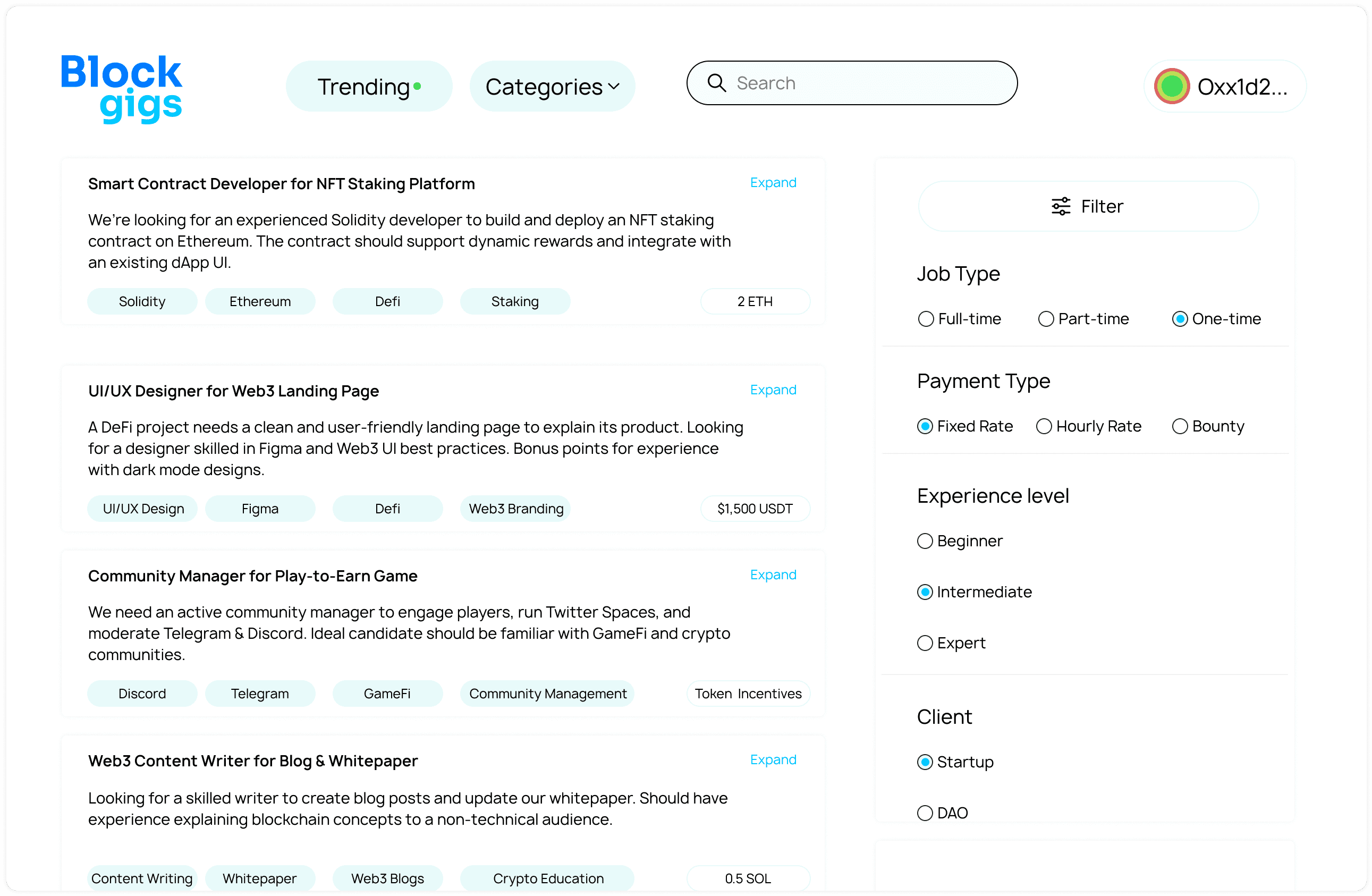 Simply connect your Web3 wallet, complete your profile, and start browsing gigs. Freelancers can apply for jobs, and employers can post listings to find top Web3 talent.